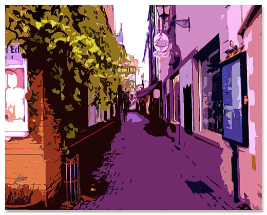 | This is the Drosselgasse. The wine bar and the souvenir shop were in both sides. The passage can be monopolized in the morning of off season. Enter. |
