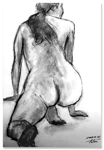 | The pause which supported the gravity of the body with both arms. Hair was scattered over the slanting back. Croquis for 10 minutes. |